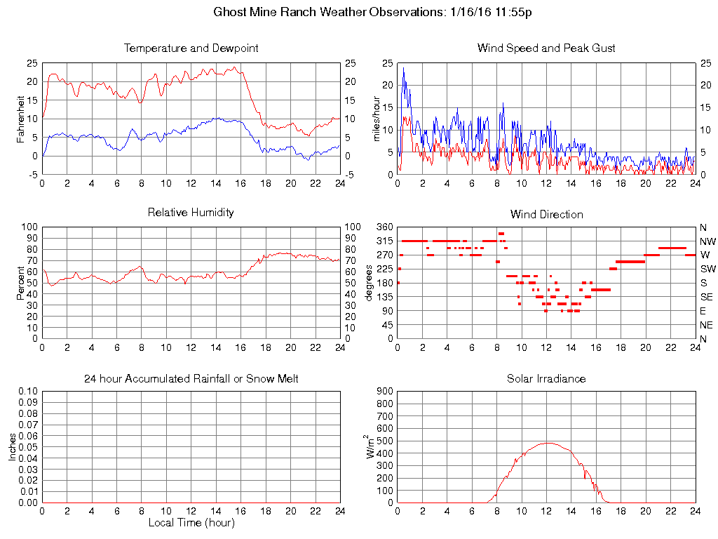 Temperature (F) 10.3 5.3 @ 21:25 23.9 @ 15:25 16.3