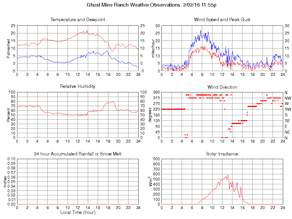 Dewpoint (F) -2.2 -2.5 @ 23:45 8.3 @ 15:05 3.2