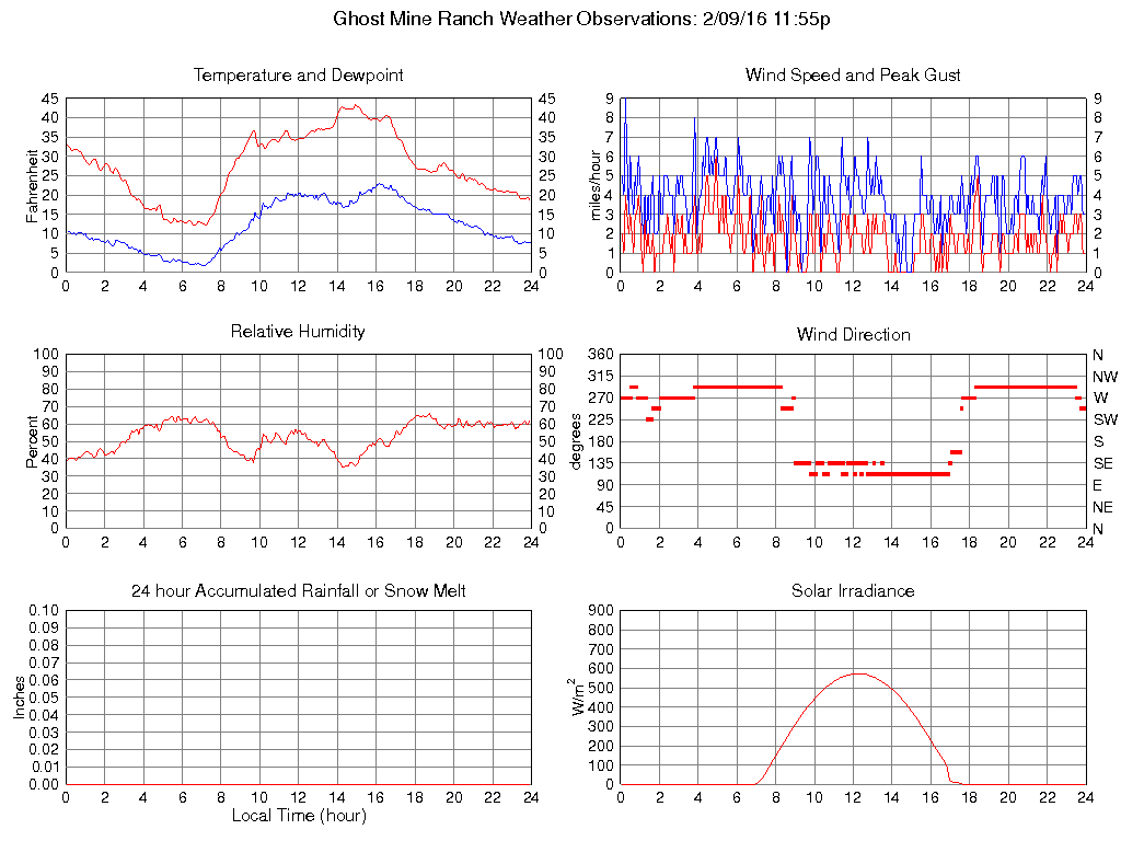 Temperature (F) 18.6 12.1 @ 06:35 43.3 @ 14:55 27.5
