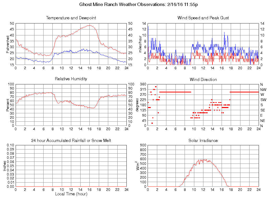 Temperature (F) 24.6 22.4 @ 06:40 48.4 @ 15:35 33.5