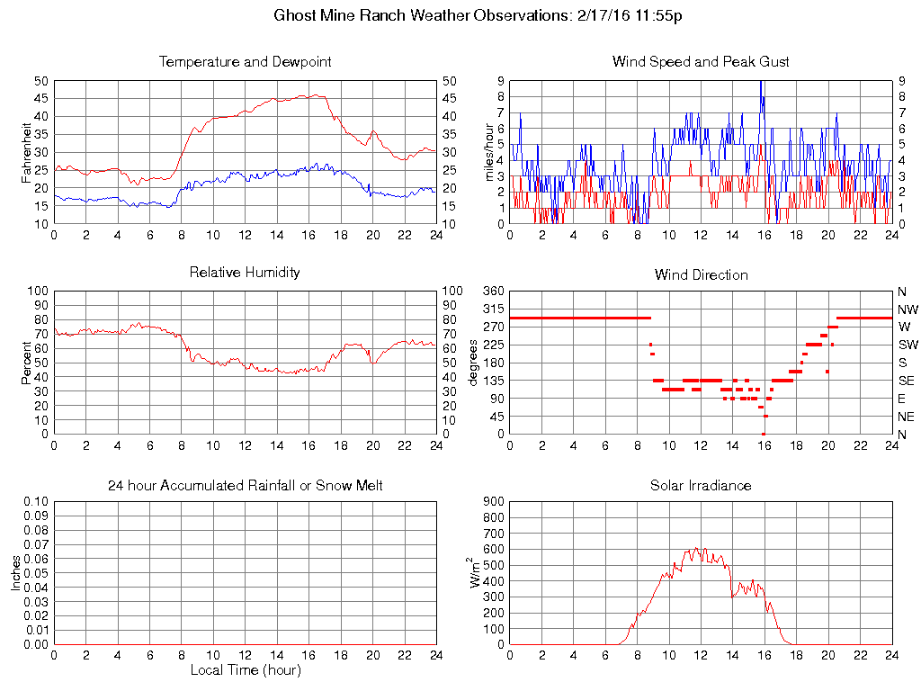 Temperature (F) 30.3 20.8 @ 05:15 46.1 @ 16:20 33.3