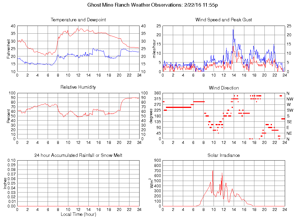 Temperature (F) 25.6 20.6 @ 05:25 38.3 @ 11:50 30.3