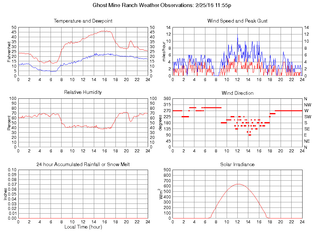 Temperature (F) 25.7 12.8 @ 06:25 46.3 @ 16:20 29.7