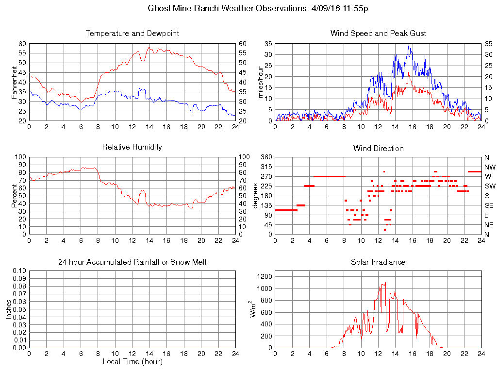 Temperature (F) 35.1 29.5 @ 06:05 58.1 @ 13:55 44.6
