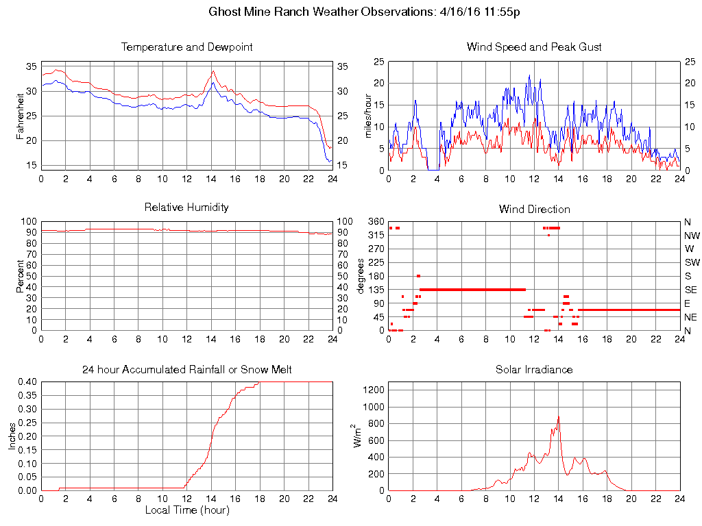 Temperature (F) 18.6 18.4 @ 23:45 34.3 @ 01:10 29.2