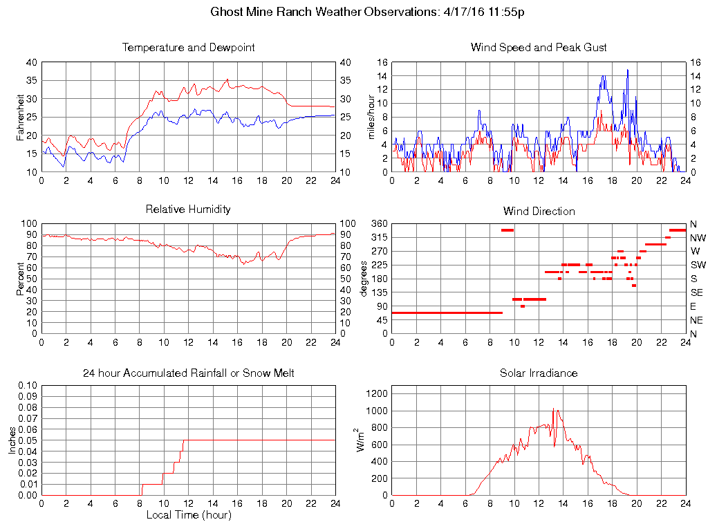 Temperature (F) 27.7 14.3 @ 01:45 35.4 @ 15:10 26.6