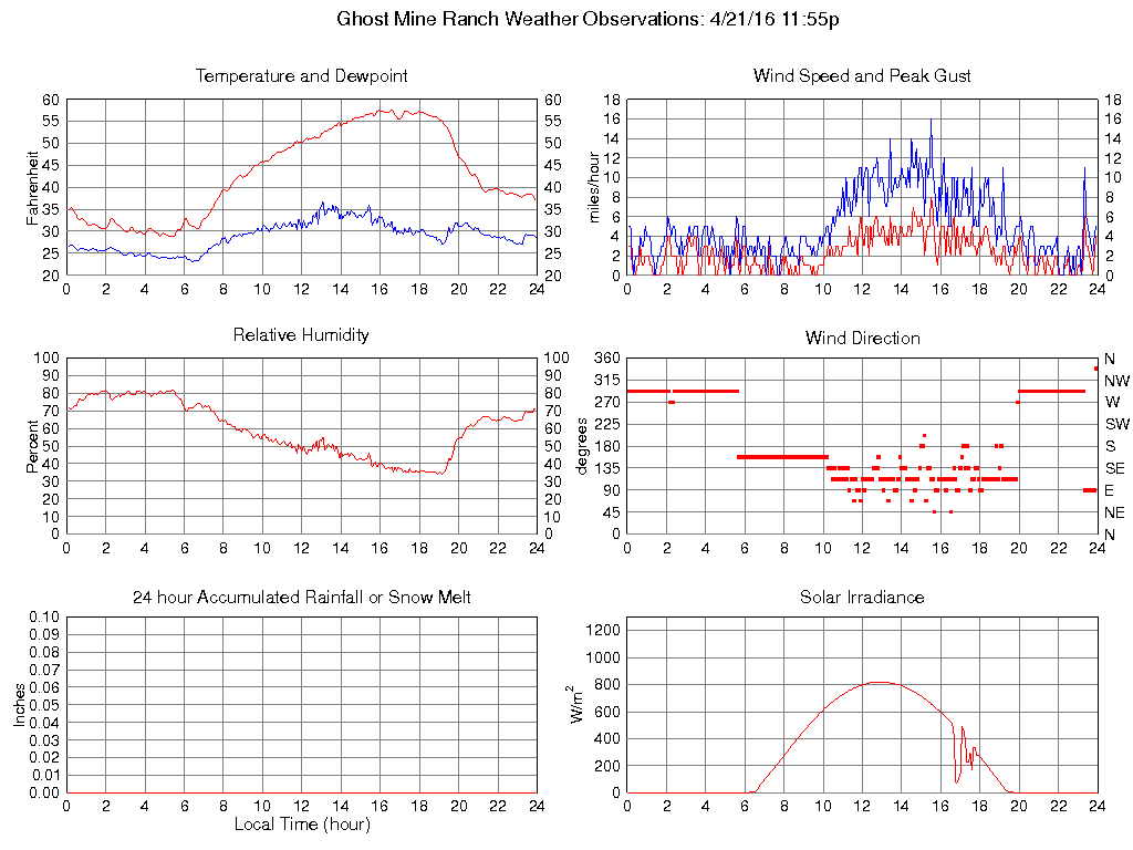 Temperature (F) 37.1 28.8 @ 05:15 57.6 @ 16:35 43.1