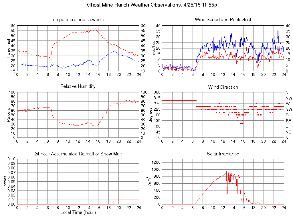 Temperature (F) 29.8 28.3 @ 06:15 57.6 @ 15:25 41.4