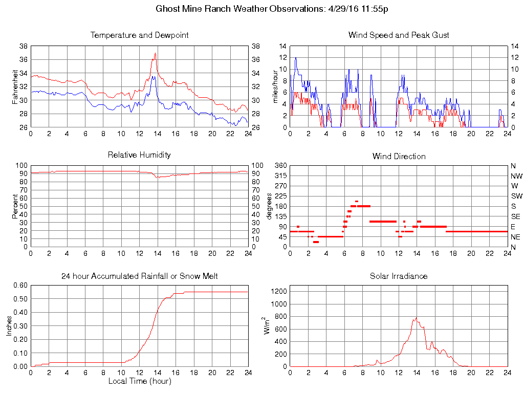 Temperature (F) 28.5 28.2 @ 22:35 37.0 @ 13:45 31.6