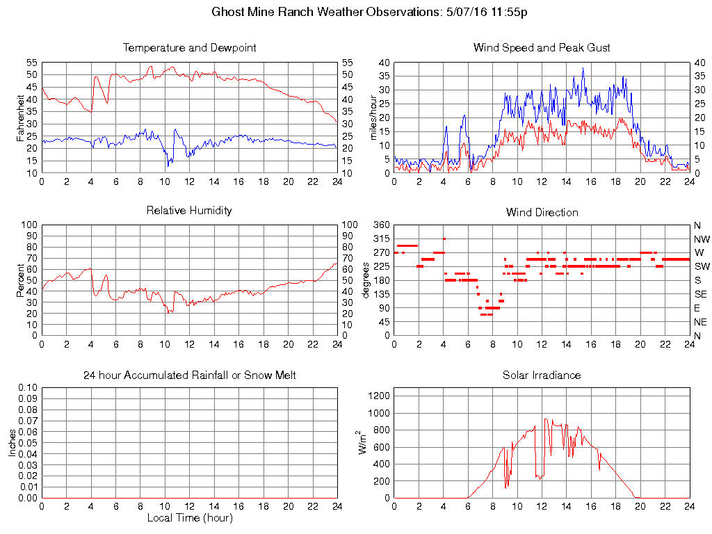 Temperature (F) 30.5 30.5 @ 23:55 53.5 @ 08:55 44.9