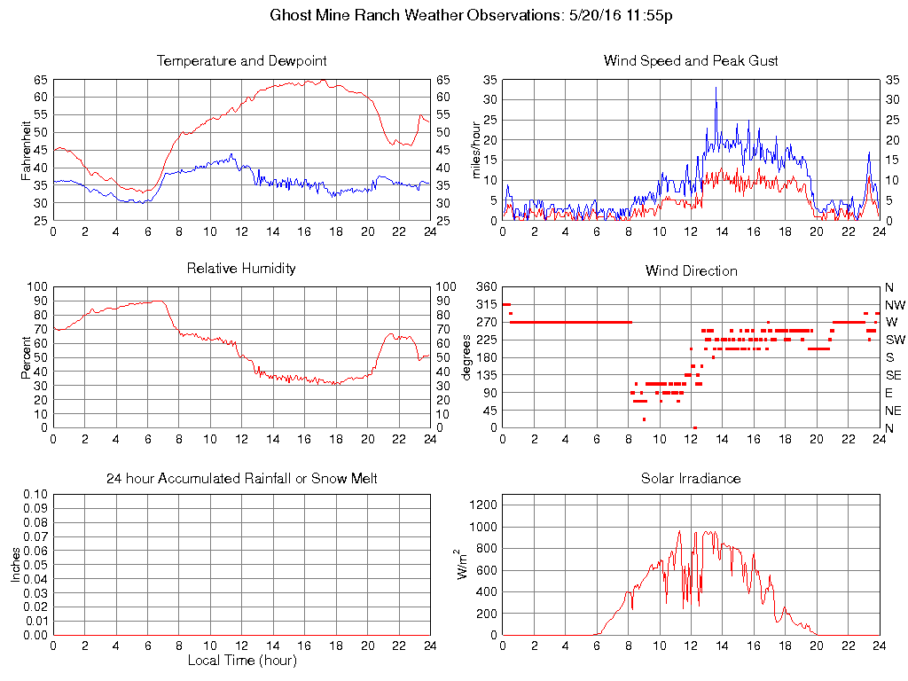 Solar Flux (W/m2) 0 0 @ 00:05 967 @ 11:15 274