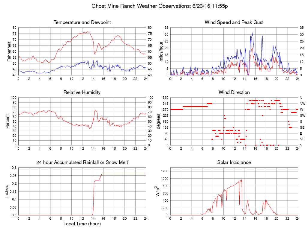 Temperature (F) 57.7 50.6 @ 04:25 76.6 @ 13:00 62.9