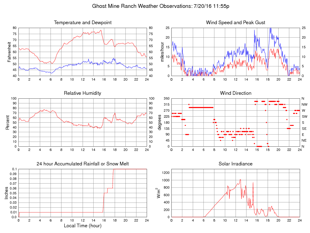 Temperature (F) 56.1 50.3 @ 06:15 78.1 @ 15:20 64.8