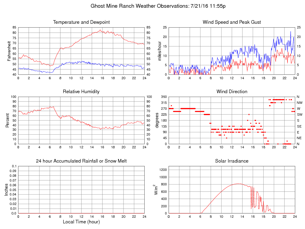 Temperature (F) 68.8 48.2 @ 06:05 82.7 @ 15:35 67.4