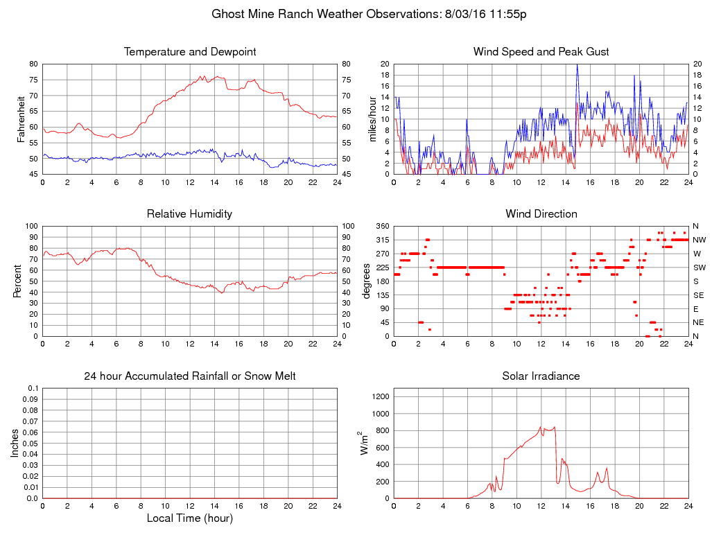 Temperature (F) 63.3 56.5 @ 06:20 76.2 @ 13:10 65.9