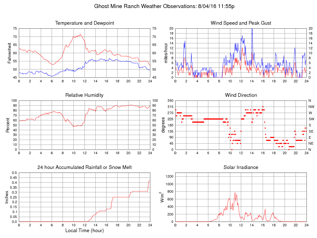 Dewpoint (F) 49.5 45.7 @ 06:00 56.7 @ 16:35 51.4