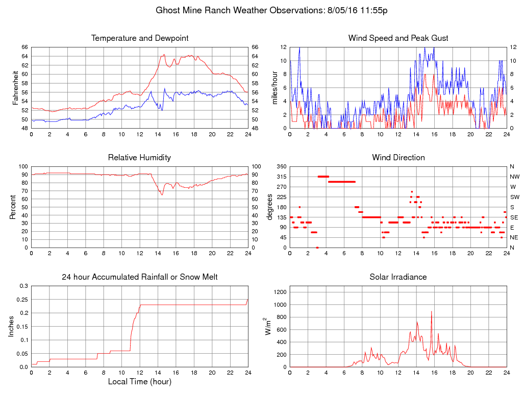 Temperature (F) 56.1 51.7 @ 02:15 64.4 @ 14:40 57.1