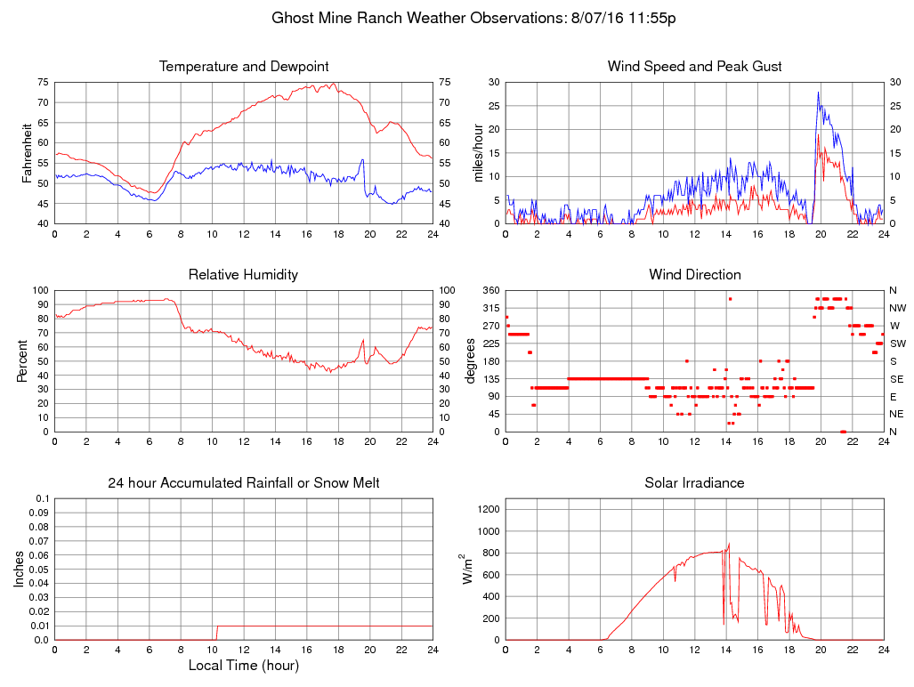 Temperature (F) 56.2 47.6 @ 06:20 74.7 @ 17:40 62.3