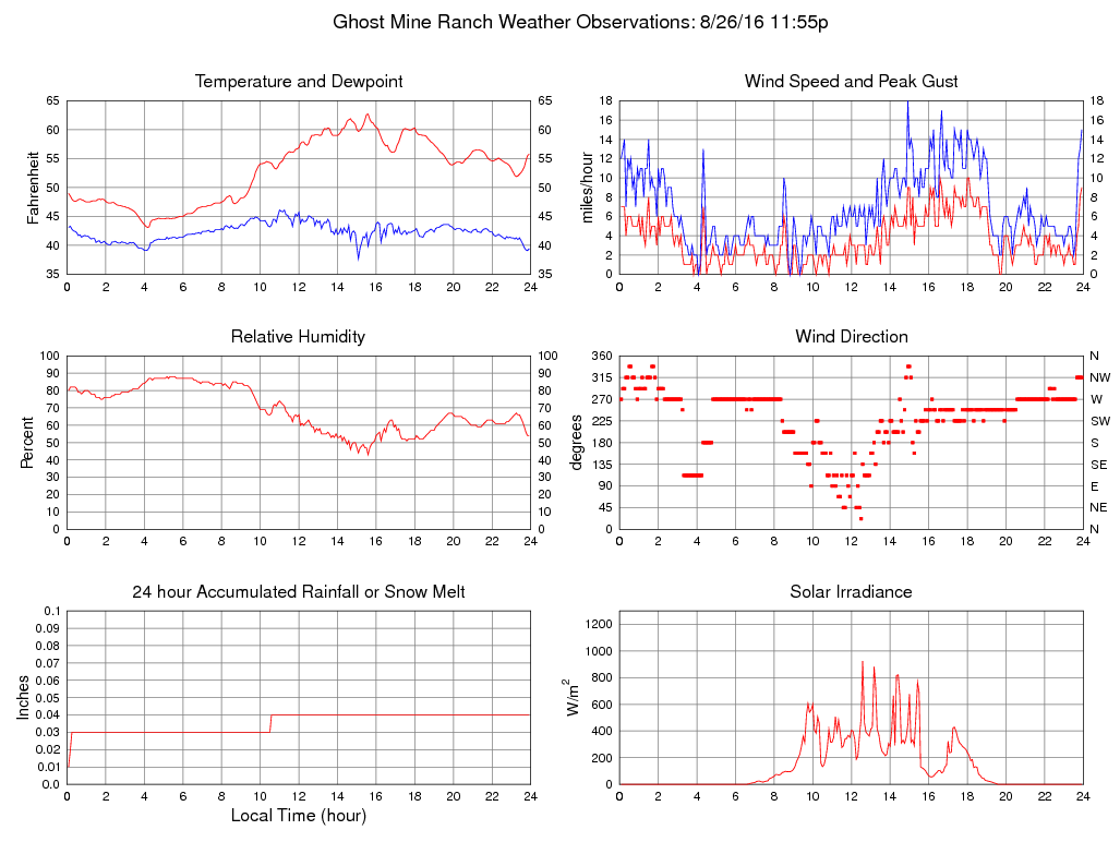 Temperature (F) 55.8 43.1 @ 04:10 62.7 @ 15:35 52.8