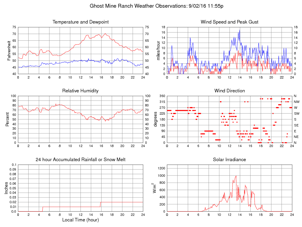 Temperature (F) 56.7 51.4 @ 00:40 70.3 @ 16:45 60.0