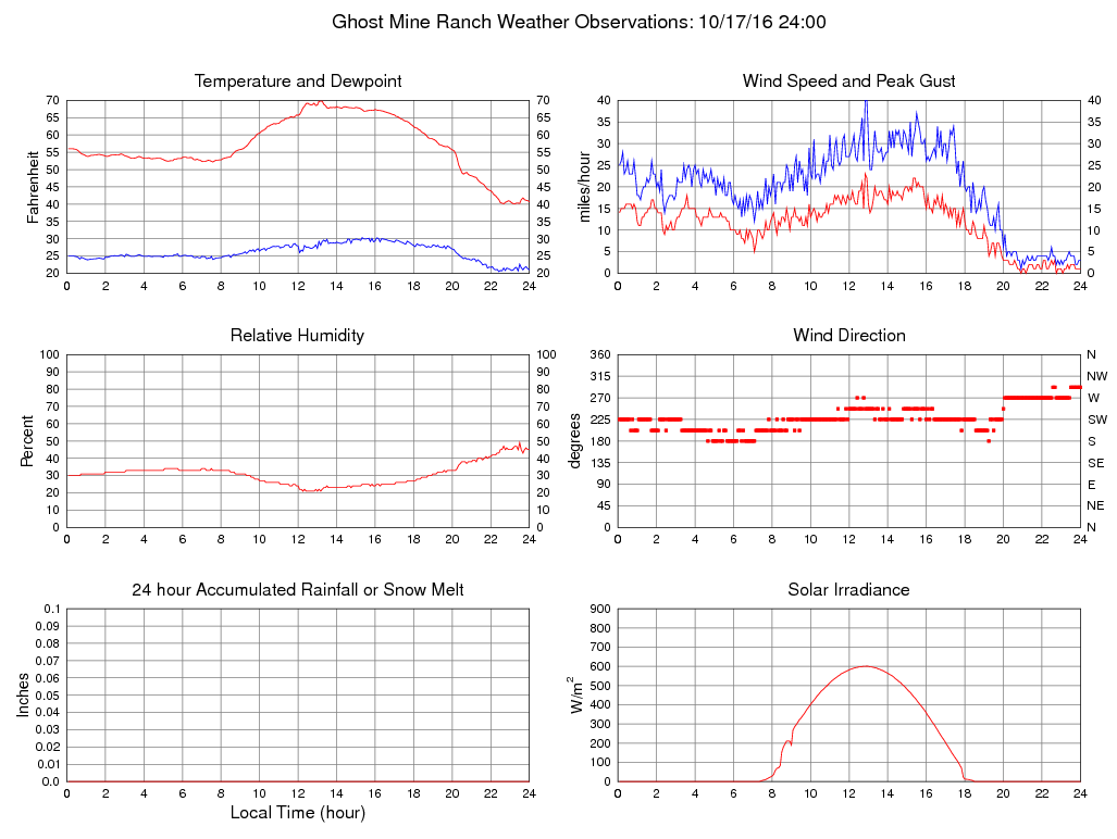 Temperature (F) 40.7 40.1 @ 22:40 69.8 @ 13:10 57.0