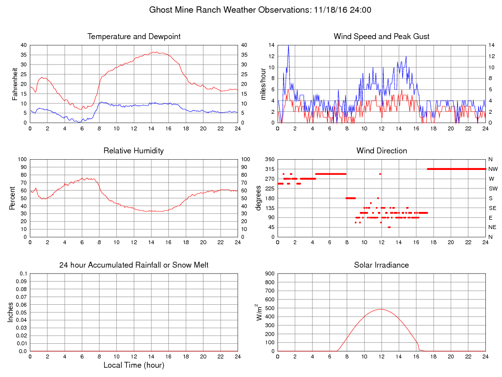 Temperature (F) 16.9 6.9 @ 05:45 36.5 @ 14:35 22.3