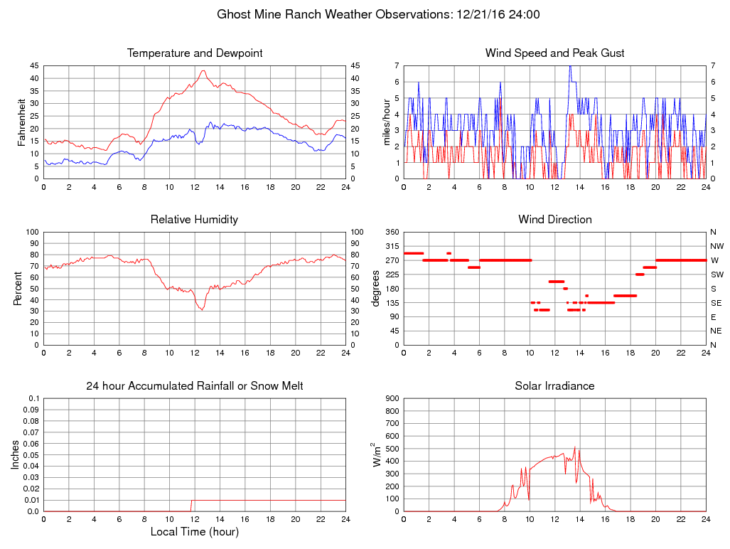 Temperature (F) 22.8 11.3 @ 04:55 43.1 @ 12:45 24.1