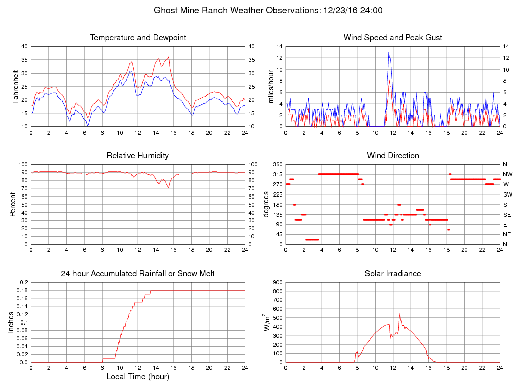 Temperature (F) 20.1 13.4 @ 06:20 36.0 @ 15:25 23.3