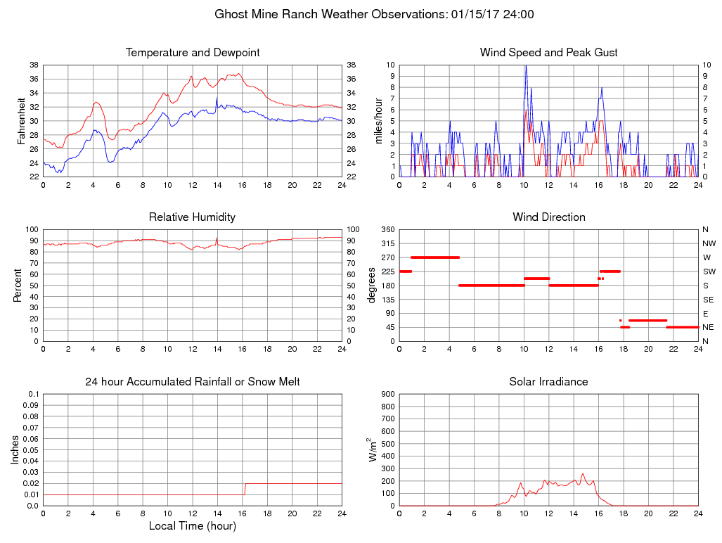 Temperature (F) 31.8 26.2 @ 01:10 36.8 @ 15:40 32.0