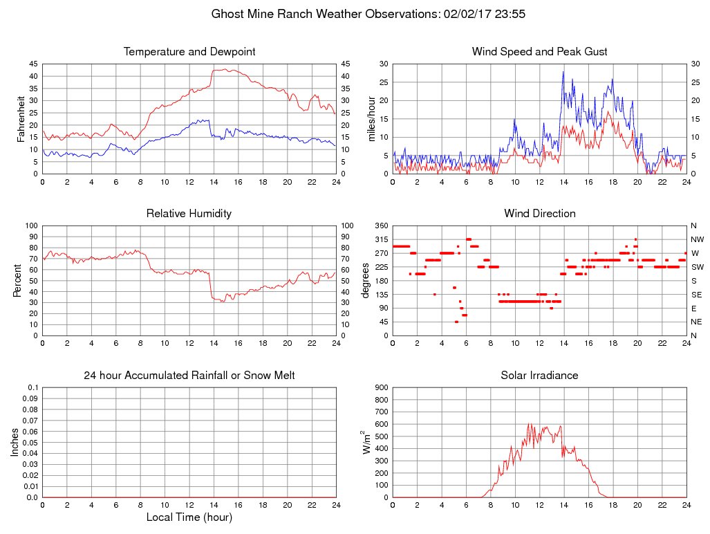 Temperature (F) 24.5 13.8 @ 00:30 42.9 @ 14:55 27.3