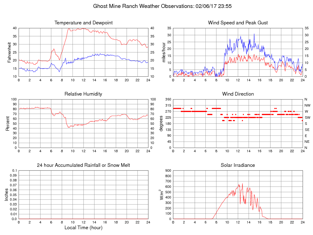 Temperature (F) 28.5 17.4 @ 03:00 39.8 @ 11:50 30.0