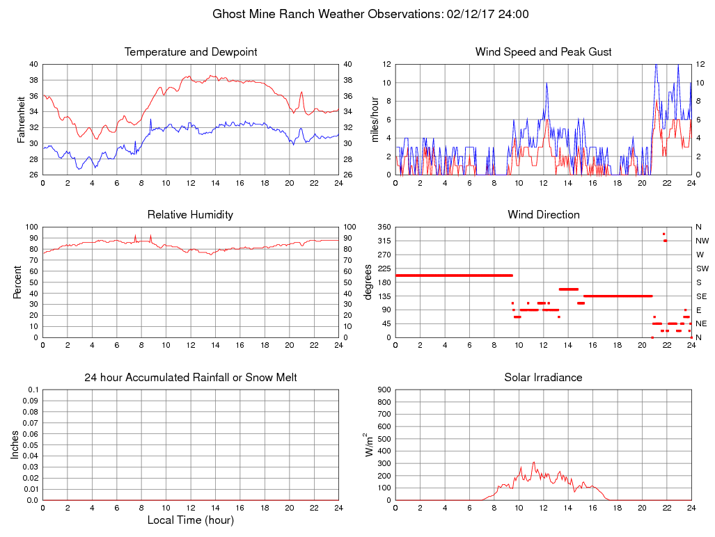 Temperature (F) 34.4 30.5 @ 04:25 38.6 @ 13:35 35.2