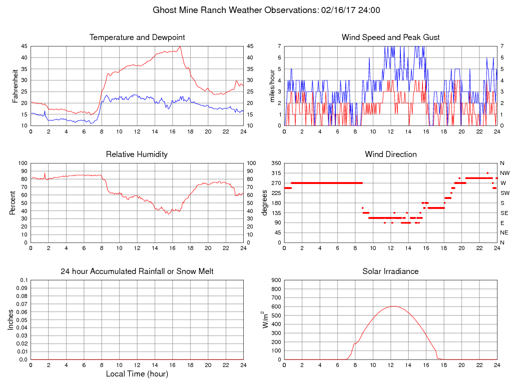 Temperature (F) 27.9 14.8 @ 06:50 44.9 @ 16:50 28.0