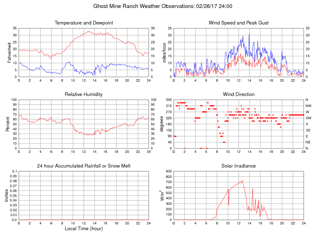 Temperature (F) 16.8 13.3 @ 05:55 32.8 @ 12:45 23.1