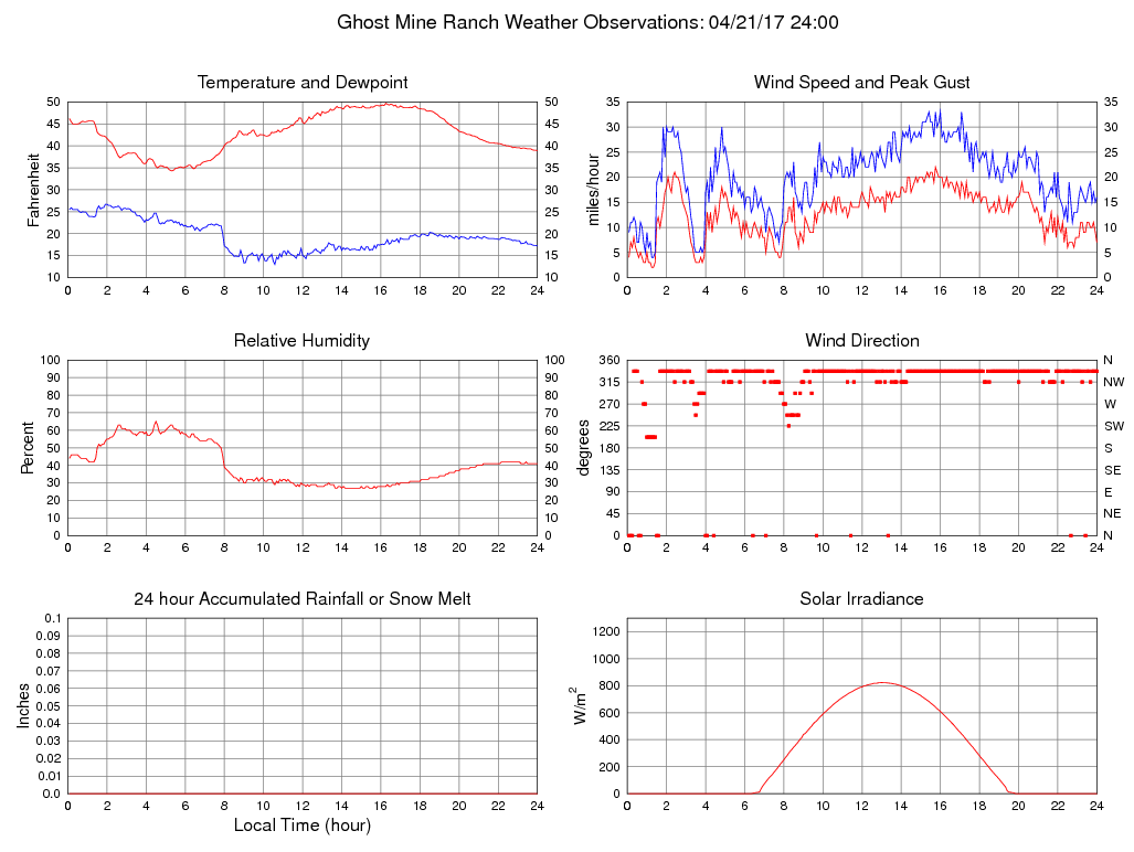 Temperature (F) 38.9 34.3 @ 05:20 49.7 @ 16:15 42.8
