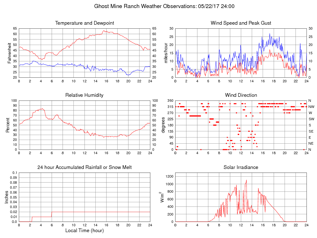 Temperature (F) 45.8 36.3 @ 04:15 63.1 @ 15:30 50.7