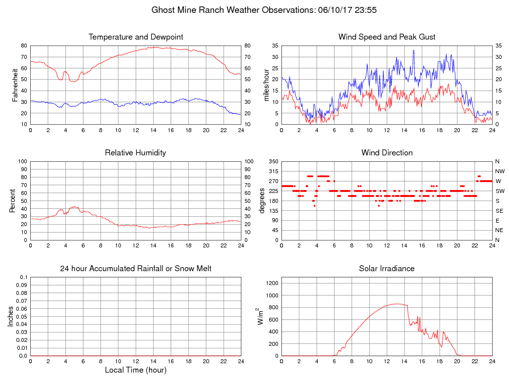 Temperature (F) 54.5 47.8 @ 05:00 78.8 @ 14:25 67.2
