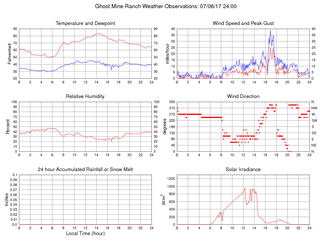 Temperature (F) 62.9 49.4 @ 05:20 83.6 @ 14:25 67.2