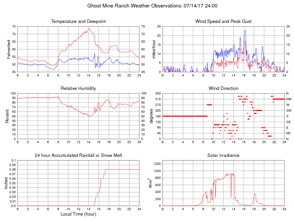 Temperature (F) 54.2 49.2 @ 07:05 73.6 @ 14:05 58.7