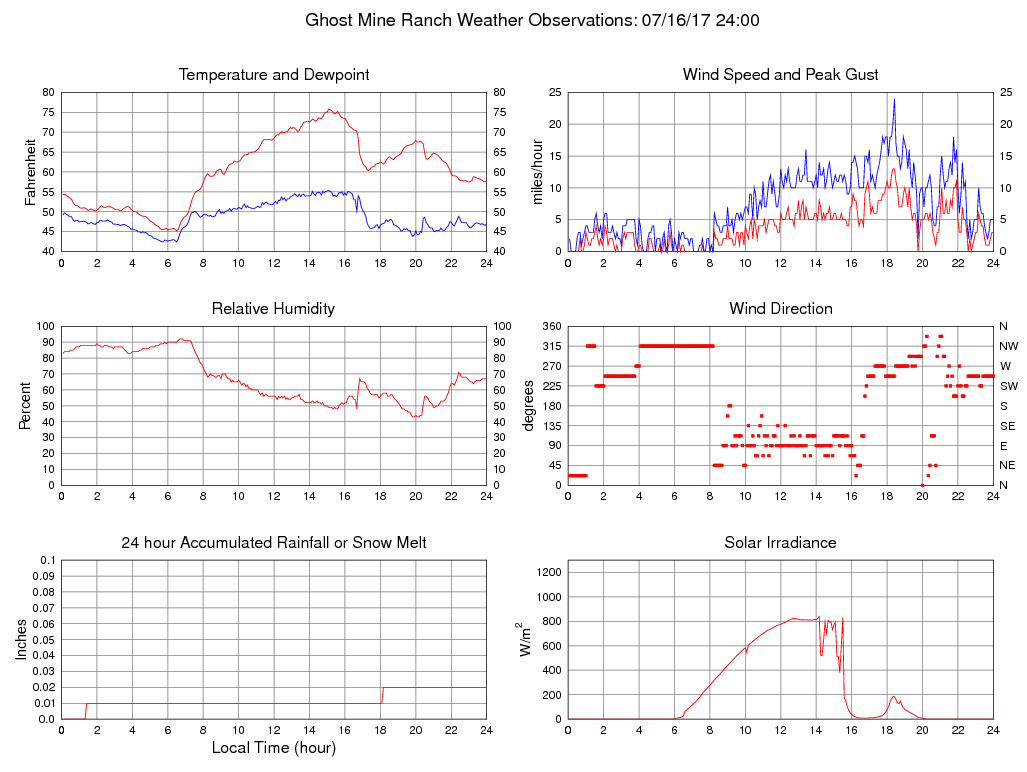Temperature (F) 57.7 45.2 @ 06:30 75.8 @ 15:05 60.3