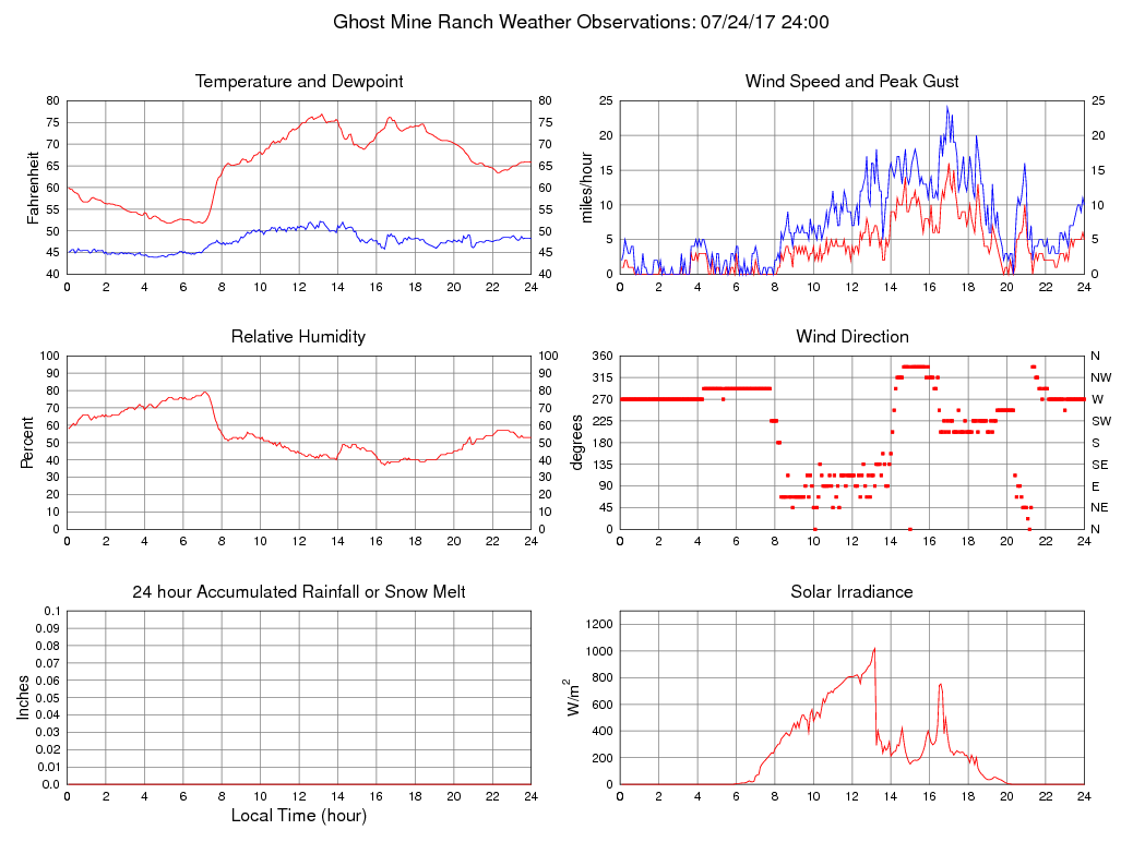 Temperature (F) 65.8 51.8 @ 05:10 76.9 @ 13:10 65.1