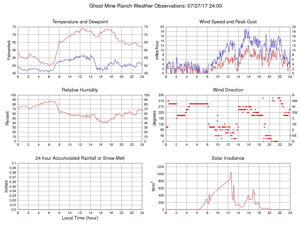 Temperature (F) 61.8 50.0 @ 06:05 74.3 @ 12:25 64.0