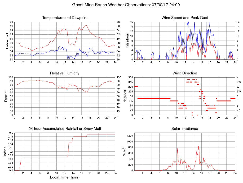 Temperature (F) 56.8 54.4 @ 04:05 66.4 @ 17:05 59.2