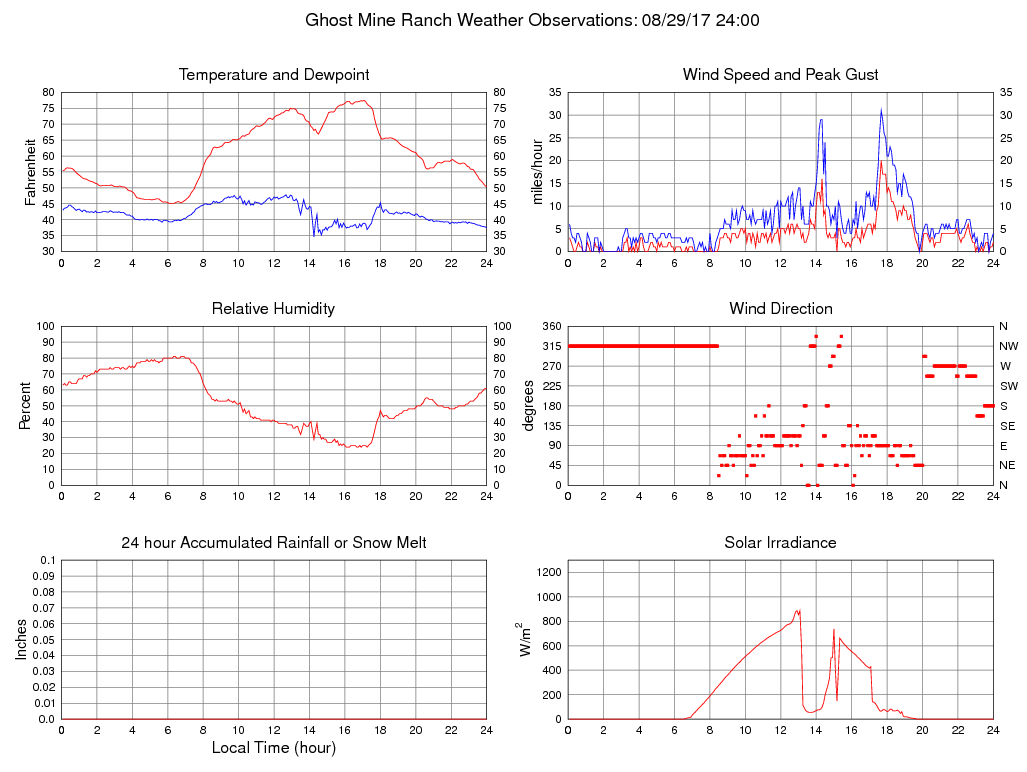 Temperature (F) 50.4 45.1 @ 06:05 77.5 @ 17:05 60.7
