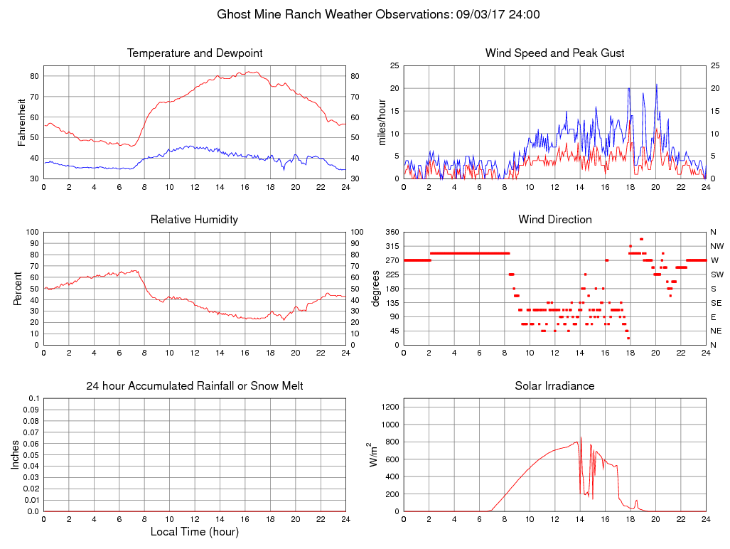 Temperature (F) 56.8 45.8 @ 07:00 82.1 @ 16:15 64.5