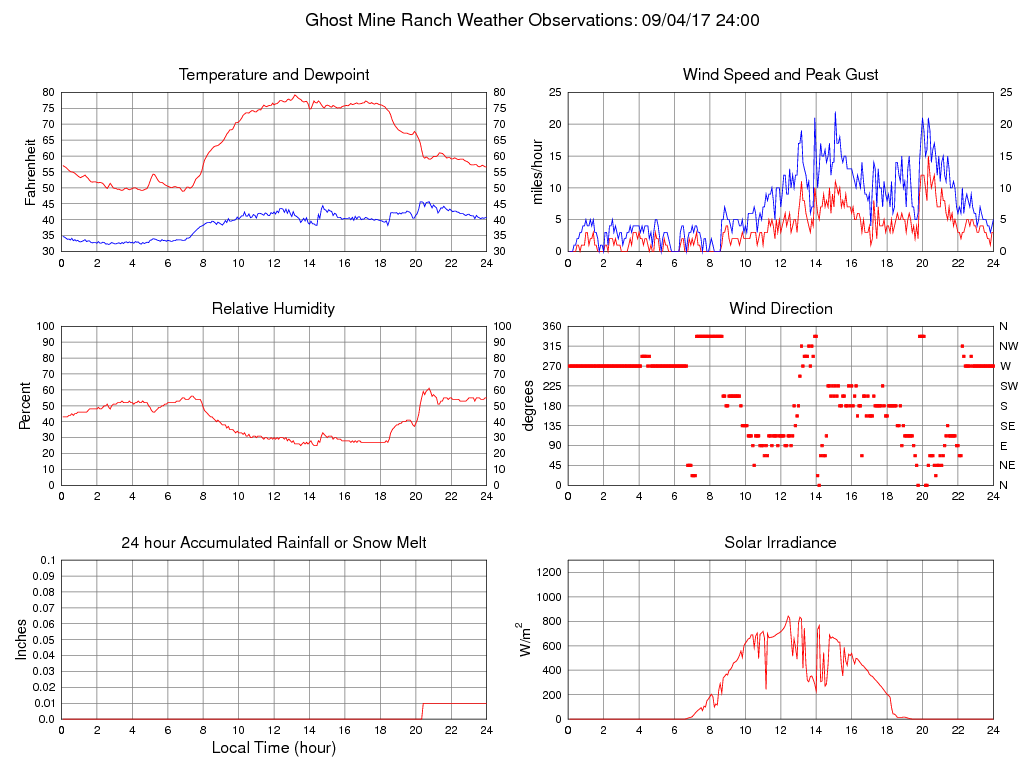 Temperature (F) 56.6 48.9 @ 06:50 79.2 @ 13:10 63.7