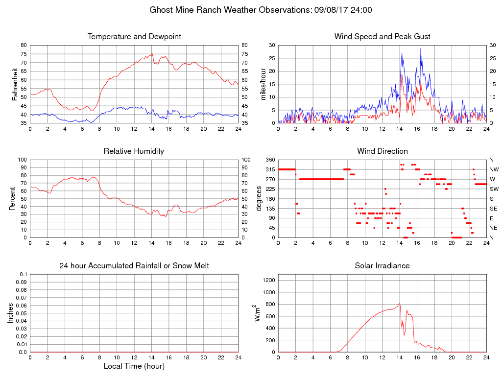 Temperature (F) 57.1 42.0 @ 07:05 75.1 @ 14:05 59.8
