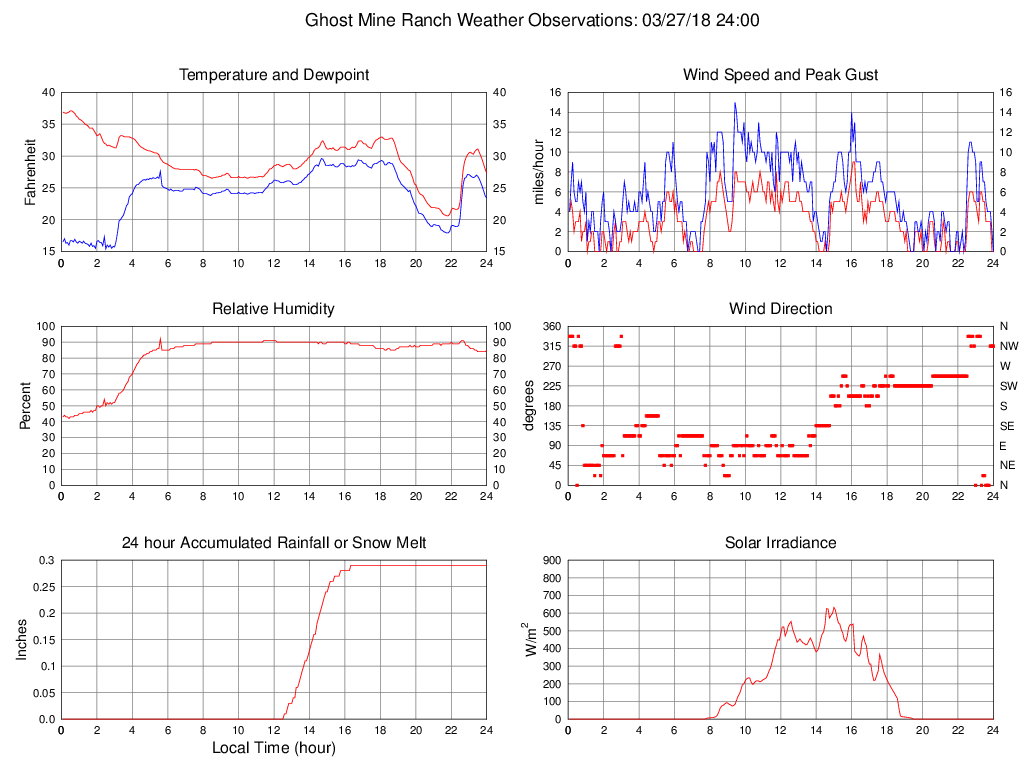 Temperature (F) 27.3 20.6 @ 21:45 37.1 @ 00:30 29.3