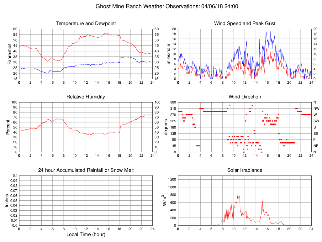 Temperature (F) 37.7 30.8 @ 05:05 56.3 @ 15:40 44.7