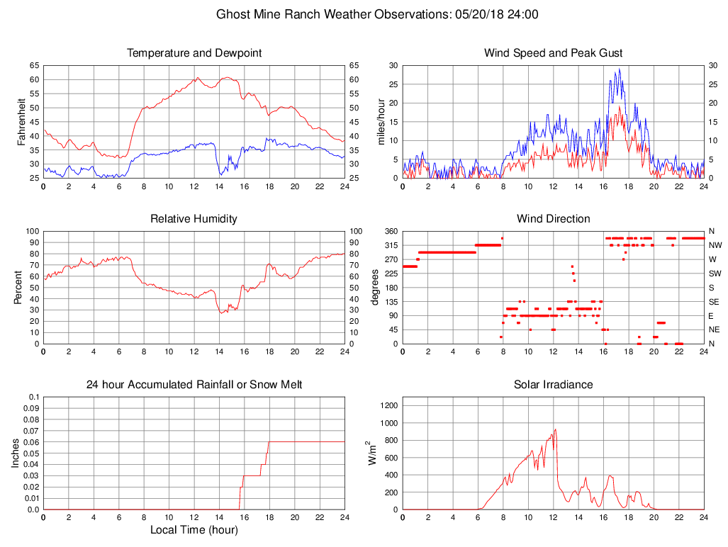 Temperature (F) 38.3 32.2 @ 06:05 60.8 @ 14:35 46.7